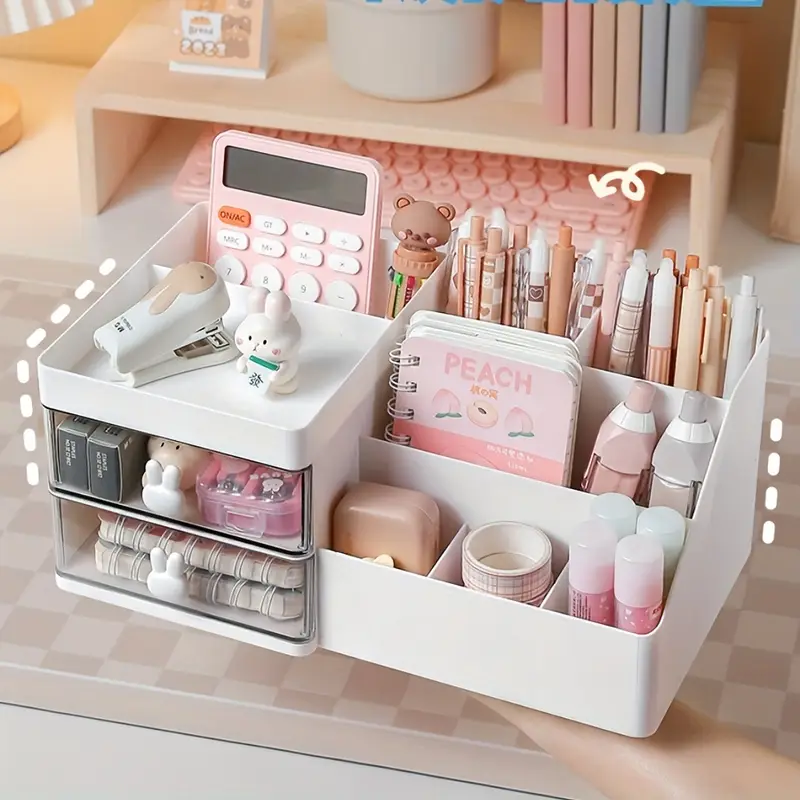 Aesthetic 2-Drawer Makeup Organizer Brush Holder
